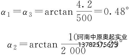 車輪群臺車的*大偏斜角(圖3-45),分三種情況考慮。**種:軌道1和軌道2或軌道3和軌道4之間因軌道高度差引起的車輪群臺車的*大偏斜角α1、α3;第二種:軌道2和軌道3之間因軌道高度差引起的車輪群臺車的*大偏斜角α2;第三種:軌道1和軌道4之間因軌道高度差累積引起的車輪群臺車的*大偏斜角α。