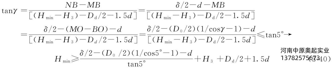 卷筒的*大偏角就是鋼絲繩中心線在卷筒主視圖平面內(nèi)的偏角γ不大于3.5°(圖3-54),當(dāng)?shù)蹉^起升到*小極限距離,卷筒出現(xiàn)*大偏角。