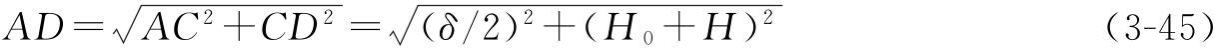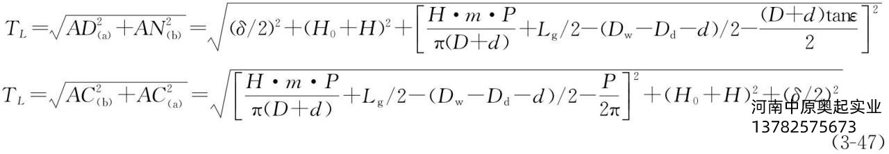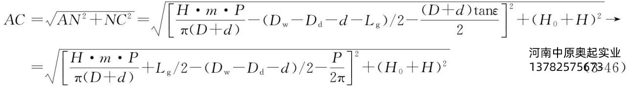 式中參數(shù)和本章前面介紹相同,δ、H0、H都可在設(shè)計時獲得數(shù)據(jù),在面對卷筒主視平面,所求長度為AC在圖3-55(b)平面的距離: