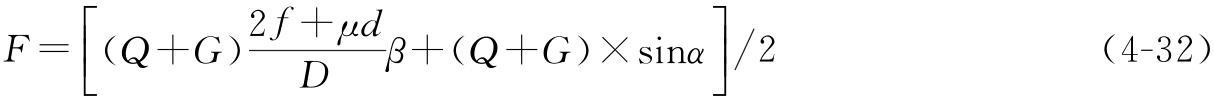 F——克服大車運行的阻力,式中的Q、G、f、μ、d、β、D、sinα參見4.4龍門吊運行機構(gòu)設(shè)計;