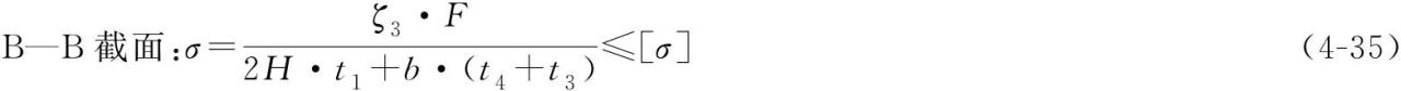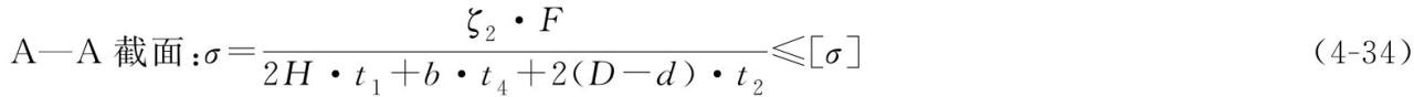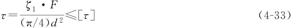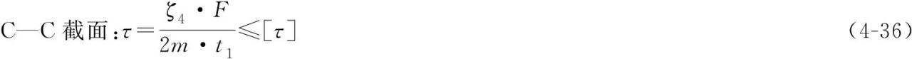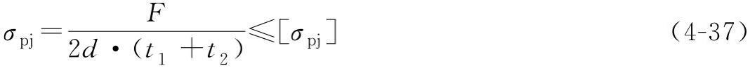 d——連接軸的直徑(鉸軸和圖4-34中的連接孔配合,直徑為D的貼板加強鉸軸的局部穩(wěn)定性和強度,由于鉸軸很短,承受的彎矩忽略不計);