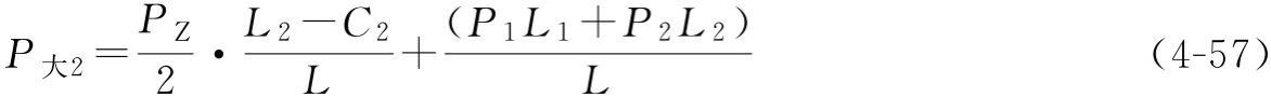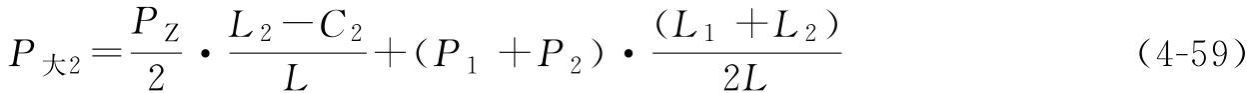 P大2——靠近大車主梁走臺里側(cè)的車輪群總輪壓,每一個(gè)車輪輪壓為P大2/m;每一個(gè)角的車輪群數(shù)量為m;